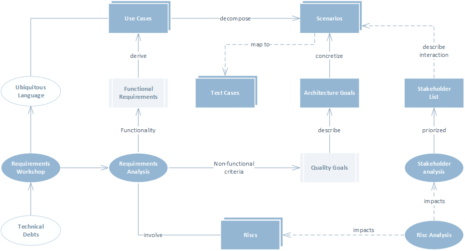 This diagram has been developed based on several books and also by many years of experience in software engineering. You may use the links and book recommendations on that page to get more information to specific parts of that big picture. The used six main categories have been adpopted from Gernot Starke's book "Effektive Softwarearchitekturen". The big picture diagram is also a good resource for preparing the iSAQB certification test.
